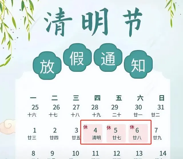 先說個人人都關心的好訊息,今年清明節放假時間剛好落在4月4日至4月6日,與周末緊密銜接, 不僅不用調休,還能讓大家擁有連續小長假。