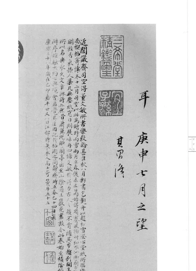 結字上,董其昌更是玩出了花。每個字都像是被精心安排的小士兵,整齊又不失靈動。它們相互呼應,顧盼生情,仿佛在紙上開派對,熱鬧非凡又秩序井然。有的字微微傾斜,像是在調皮地眨眼睛;有的字則端端正正,盡顯端莊大氣,組合在一起,和諧得不像話。