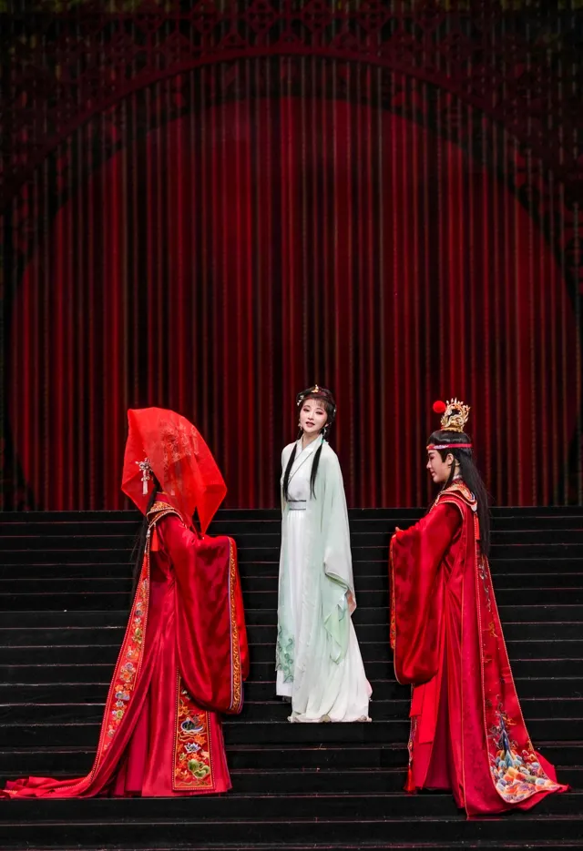 越劇【我的大觀園】以賈寶玉的視角觀察和思考「紅樓」世界,講述了賈寶玉在社會與家庭磨礪下的成長故事。在劇中,越劇演員陳麗君飾演賈寶玉,何青青和夏藝奕分別飾演林黛玉,李雲霄飾演薛寶釵。