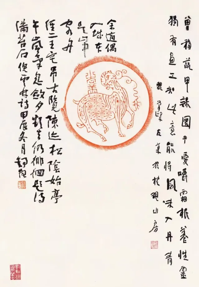 如果仔細觀看,會發現漢磚的圖案和題跋的詩詞很是貼切,形成了藝術的再創造,拓展了讀者的審美空間思維,延伸了作品的歷史感。