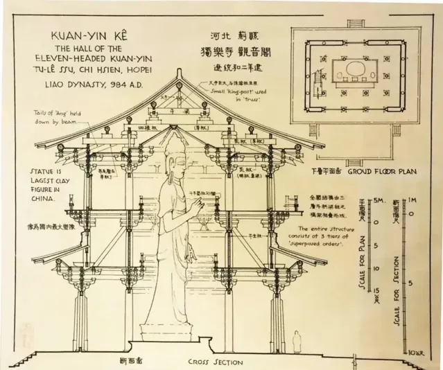 梁思成先生繪制的薊縣獨樂寺觀音閣剖面圖 圖源:@手繪線上