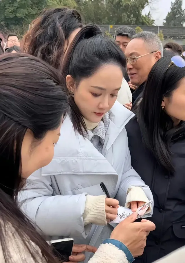 那天,陳喬恩穿了一件淺藍色的羽絨服,搭配淺色的牛仔褲,整體給人一種輕松休閑的感覺。紮著的馬尾辮讓她看起來格外利落穩重。真心佩服她的接地氣啊,不僅主動和粉絲打招呼,還熱情地給大家簽名,性格十分隨和。