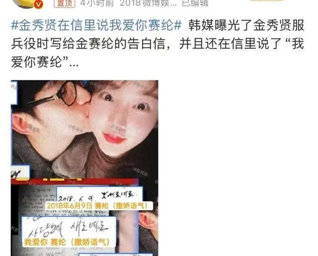 韓媒還曝光了金秀賢服兵役時寫給金賽綸的告白信,並且還在信裏說了「我愛你賽綸」。金秀賢目前是掉了很多代言,真是該,赤裸裸的渣男和惡魔,他罪惡的手汙染了一個小女孩純潔的靈魂,還害的金賽綸輕生自殺。