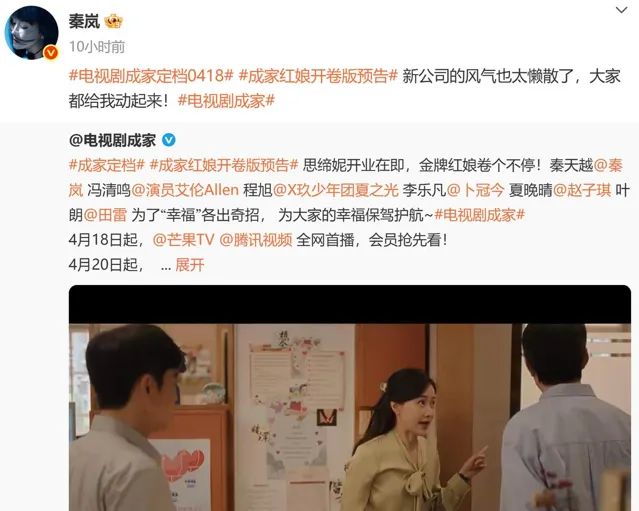 【成家】定檔4月18日,將在鵝廠、芒果播出,並上星湖南衛視。