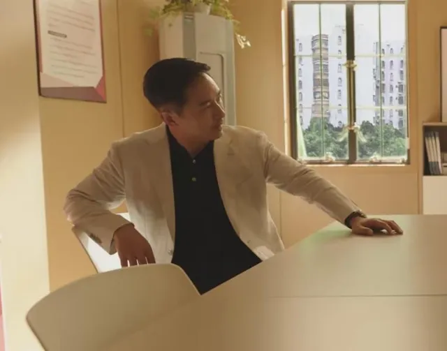 而新劇中,郭曉東也客串了一個婚介機構客戶,他一只手撐在椅子,另一只手搭在桌面上,坐姿松弛,一看就是位類似「霸總」的角色。