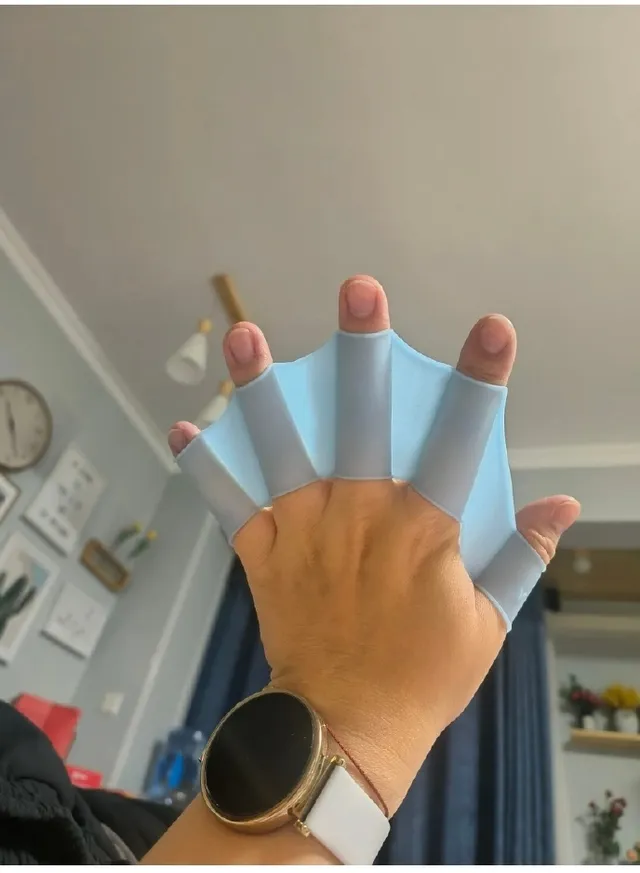 試圖戴上手蹼模仿鴨子遊泳