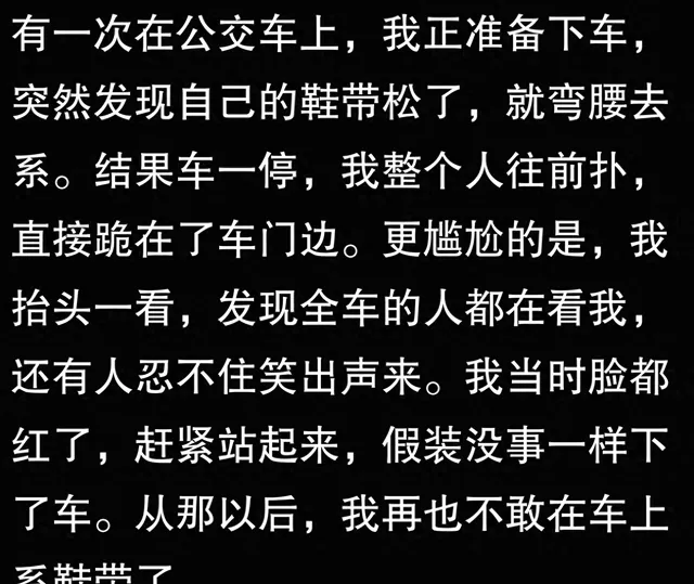 以前我也遇到過很尷尬的場面,有一次在公司年會上,我穿著新買的裙子,結果不小心踩到了裙擺,整個人摔在了舞台上,全場都看著我,當時真是恨不得找個地縫鉆進去。從那以後,我每次穿裙子都會特別小心,再也不敢大意了。