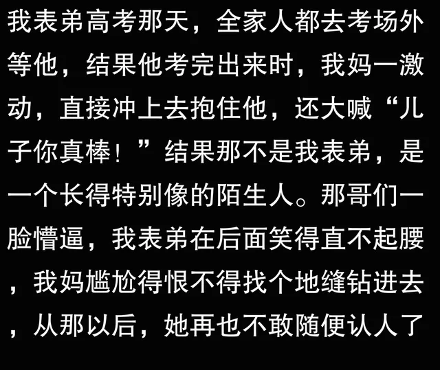我高中時在課堂上打瞌睡,老師突然點名讓我回答問題,我迷迷糊糊站起來,直接背了一段昨晚背的英語課文,結果老師問的是數學題,全班都笑翻了,我尷尬得恨不得鉆地縫。