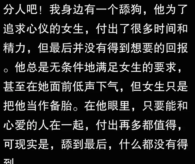 身邊確實有舔狗舔到最後應有盡有的例子,但往往這種關系並不長久,最終往往是舔狗受傷。