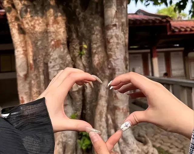 三個人出去玩,特有比心方式!