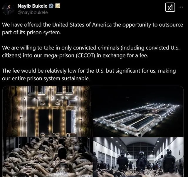 甚至如果美國願意,薩爾瓦多還可以接收 目前在美國服刑的其他罪犯,哪怕是美國公民。