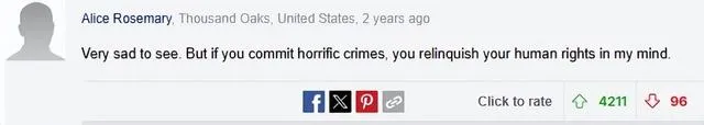 「看著很難過。但 在我看來,如果你犯下了恐怖的罪行,你就已經放棄了你的人權。 」