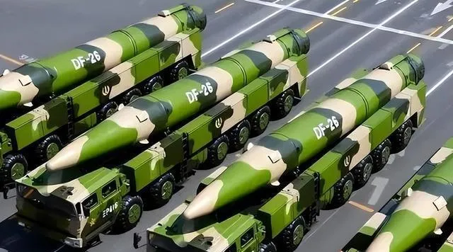 東風-26被戲稱為「關島剃刀」,射程超過4000公裏,隨便瞄準美國第二島鏈上的軍隊就像捏小貓咪似的。