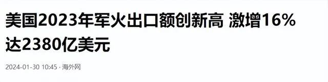海外網2024-01-30【美國2023年軍火出口額創新高 激增16%達2380億美元】