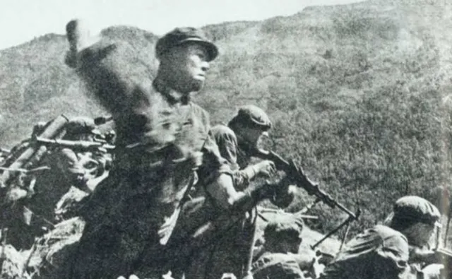 文書給他送上來一箱手榴彈,都扭開了蓋子,擺在身邊,敵人遠,用槍打;近了,投手榴彈,機槍打子彈太多了,不響了,就端起衝鋒槍打,他一個人堅守著陣地的三十多公尺正面。
