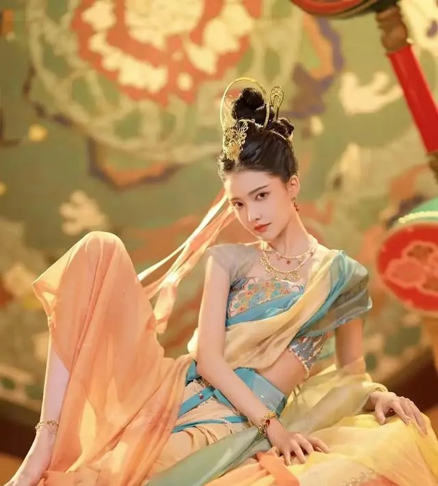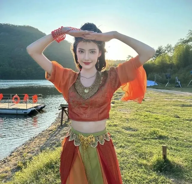 裙子上活潑靈動的紋路和濃烈的顏色仿佛在隨著她的動作起舞,盡顯異域風情。
