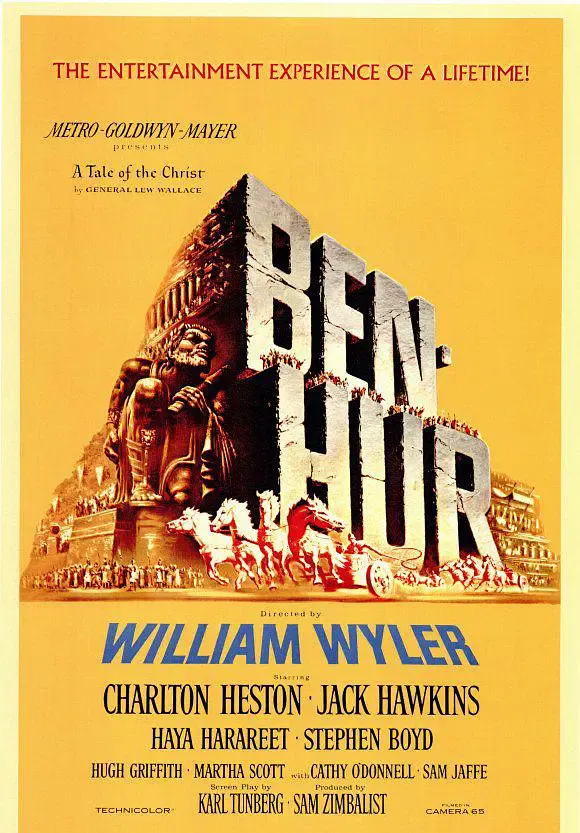 威廉·惠勒執導的【賓虛】橫掃第32屆奧斯卡最佳影片、最佳導演、最佳男主角等11項大獎,波瀾壯闊、氣勢恢宏。事實上,小說【賓虛】的作者盧·華勒斯本意是圍繞耶穌寫一個故事,後擔心以耶穌為主人公觀眾不太買賬,便將重心落到了一個虛構的猶太貴族賓虛身上,透過他來展現耶穌的部份經歷及新興的基督文明如何同羅馬帝國相沖突。