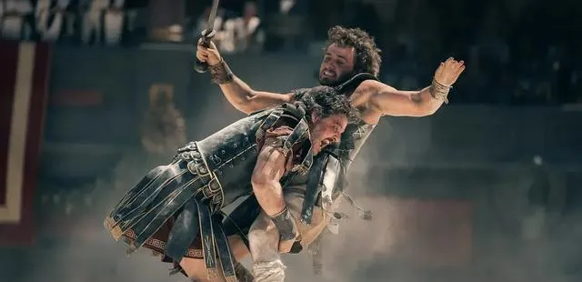 負責任地說,雖然坐進影院之前有點興味索然,但【角鬥士2】絕非爛片,只是劇情平庸了些。路奇烏斯希冀「還羅馬人民一個輝煌的羅馬」,就差聲嘶力竭高喊一句「Make Roman Great Again」了——這樣的主題放在當下的語境,很容易被毒舌的評論界視為「老白男任性輸出的意淫」,想想科波拉改編自古羅馬歷史著作【喀提林陰謀】、同樣在今年上映的【大都會】是如何中道崩殂的吧。此外,歷史考據黨與「精羅」們必定會對【角鬥士2】兒戲般的政治賽局部份大翻白眼,不過雷公顯然本也沒打算將重點聚焦於古羅馬高品質猛男怎生沖著王圖霸業殫精竭慮上,他對威權的最高象征——皇帝的態度,向來是一黑到底,參見【拿破侖】裏的拿破侖、【法老與眾神】裏的拉美西斯二世等。(【天國王朝】裏愛德華·諾頓飾演的鮑德溫四世大抵是個例外,雷公對這個角色似乎傾註了無限愛憐。)
