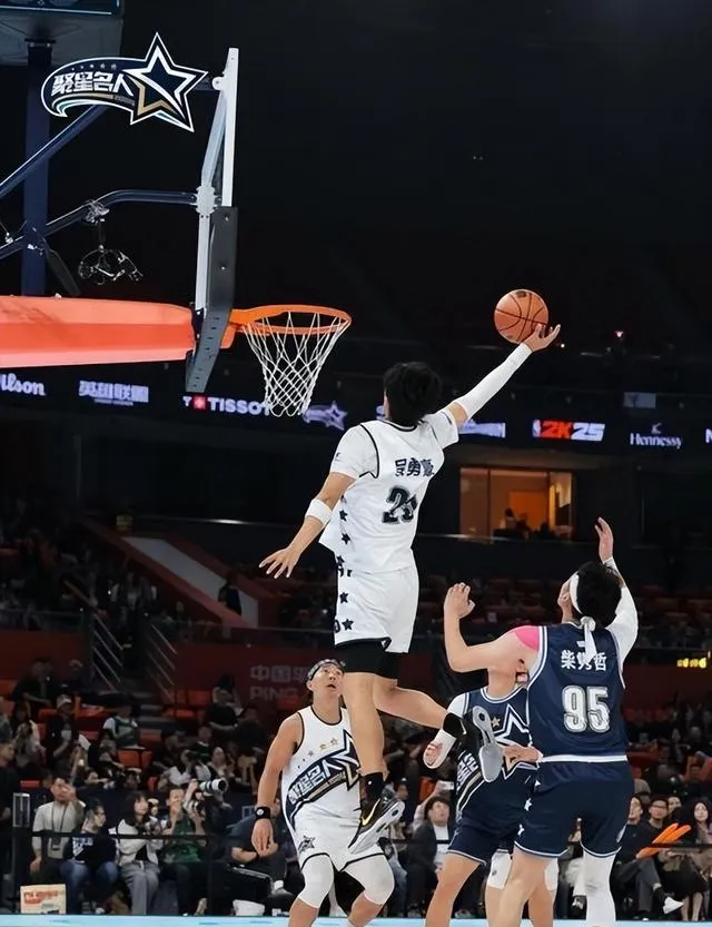 第一節他就上演了一次漂亮的換手暴扣,直接為湖人隊打響了頭炮。