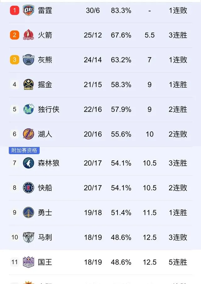 西部最新排名圖如下: