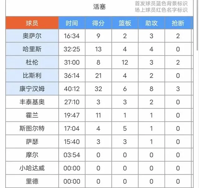 活塞:康寧漢姆、畢斯利、奧薩爾、哈裏斯、杜倫