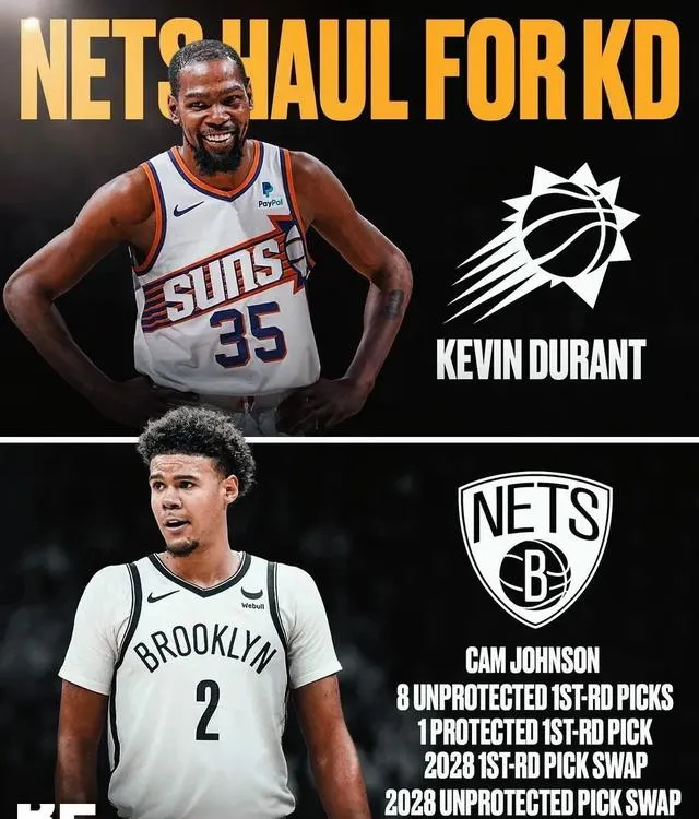 但,即便真的讓太陽拿到了三個首輪和一個年輕球員,相比當初太陽得到杜蘭特的代價,依然是虧麻了——兩年前,太陽得到杜蘭特送出的籌碼是 米卡爾布裏奇斯、卡麥隆強森、克勞德、四個首輪簽、一個首輪互換 。