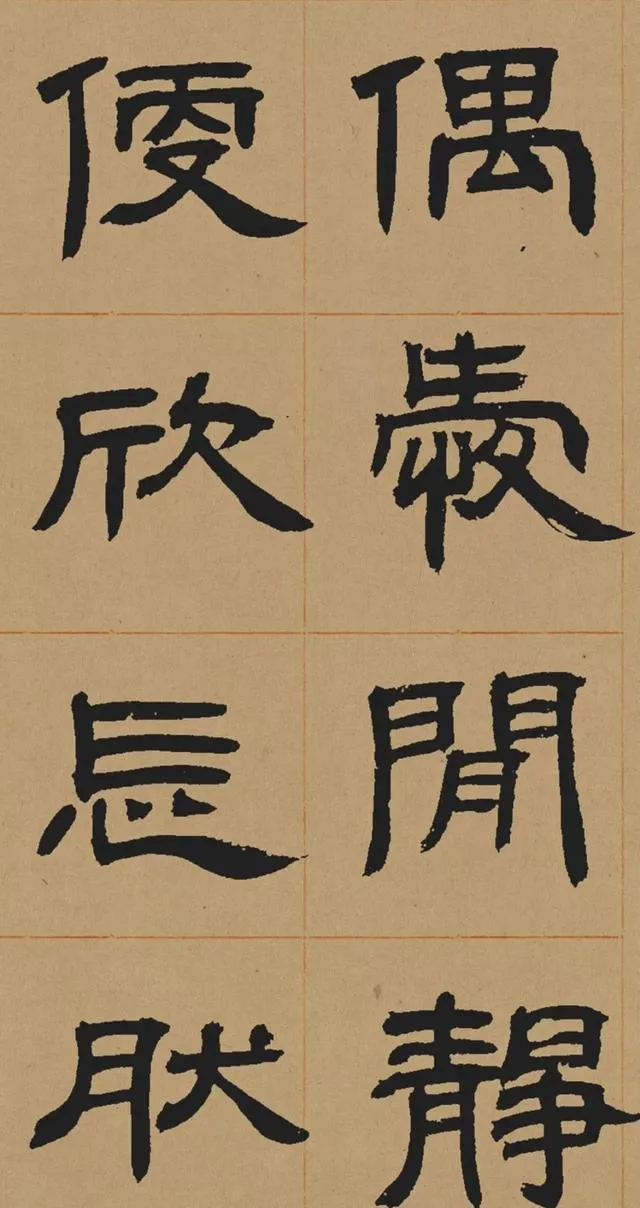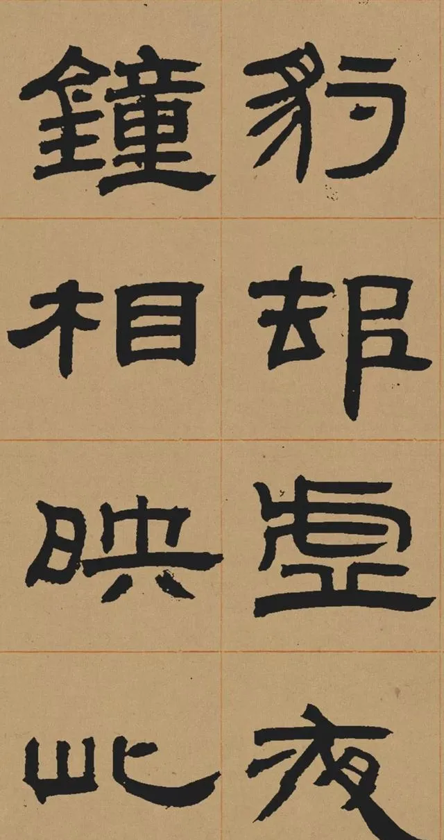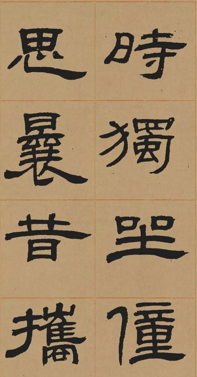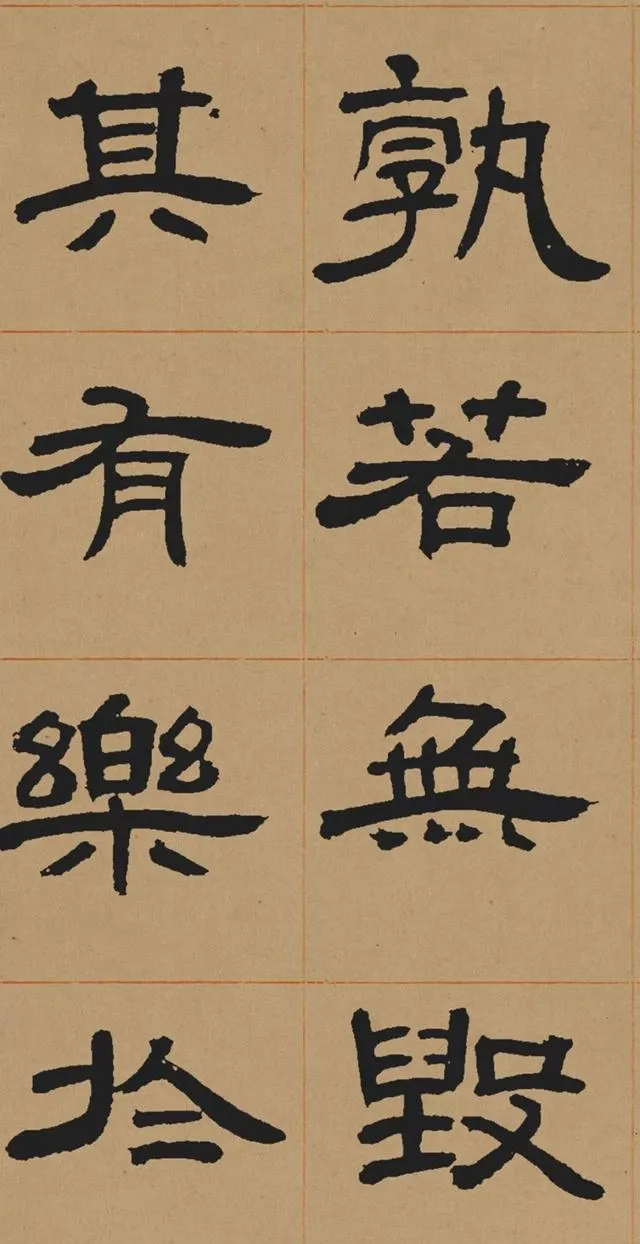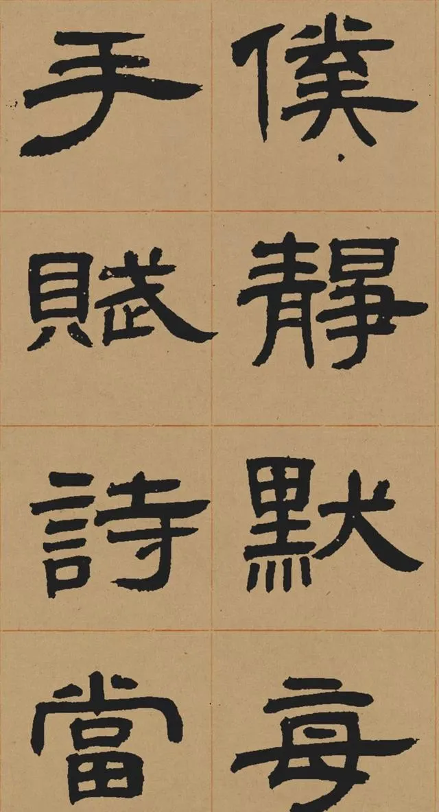 在碑學思潮下,鄧石如深入研習秦漢碑刻,尤其是對漢代隸書的臨摹與再創造。他摒棄了當時流行的「玉筯篆」式隸書(線條單一、結構刻板),轉而追求漢隸的渾厚與自然。這種藝術選擇既順應了清代學術的考據風氣,也推動了書法從實用書寫向藝術表現的轉型。