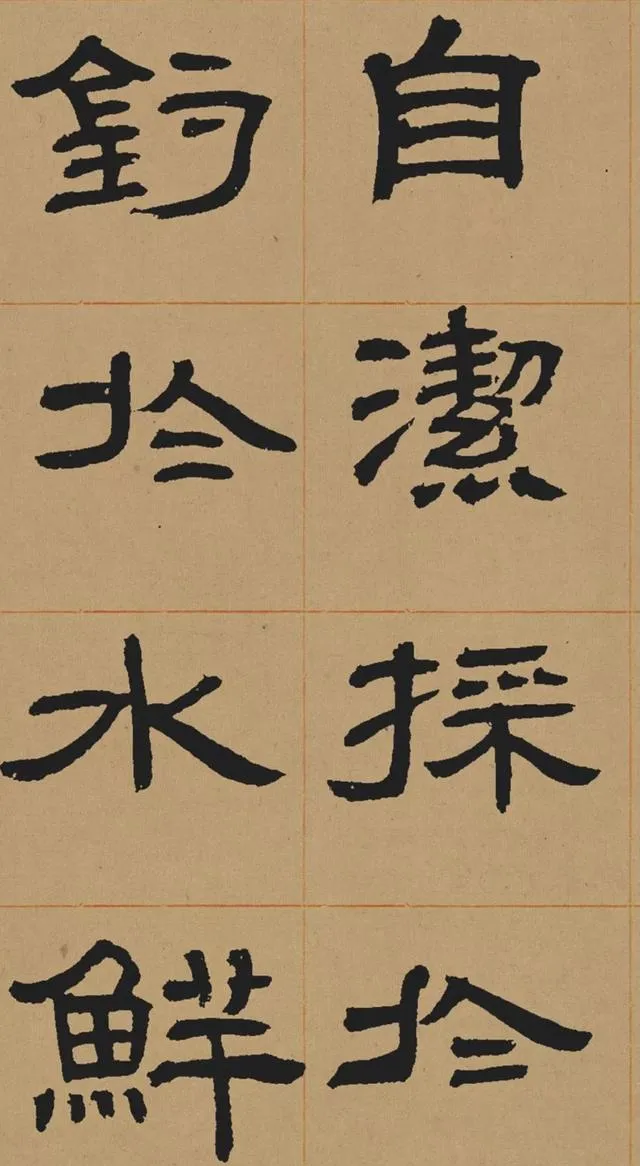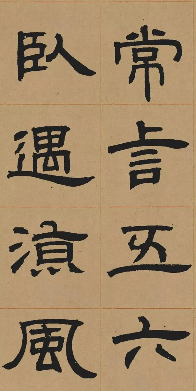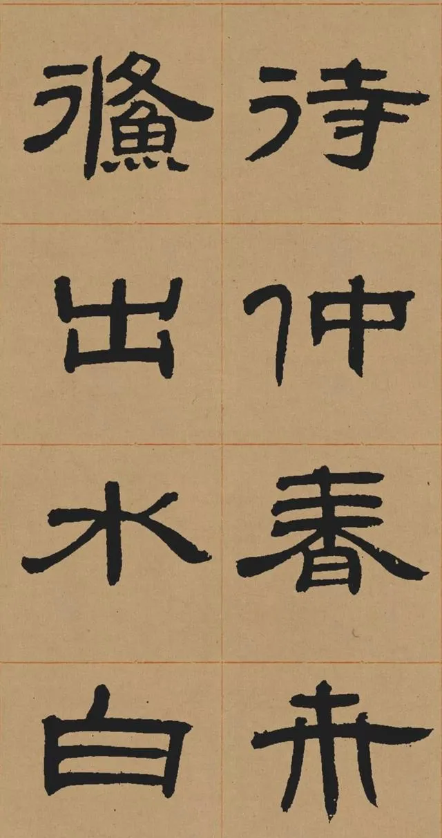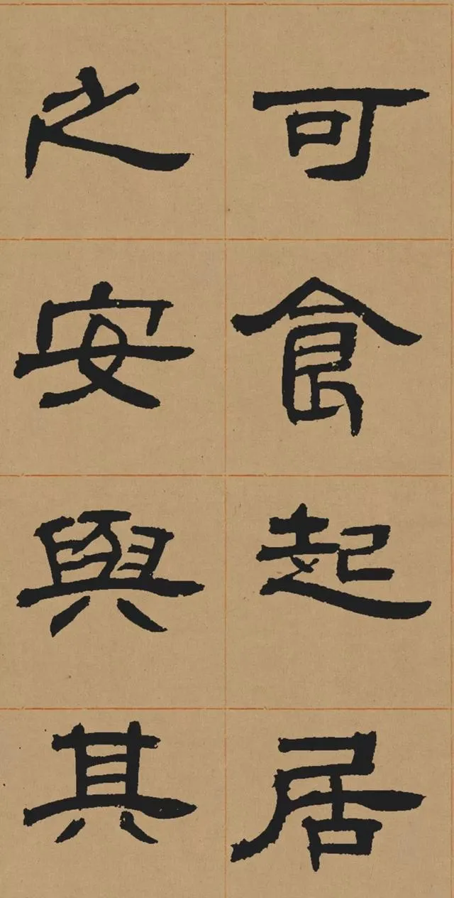 在碑學思潮下,鄧石如深入研習秦漢碑刻,尤其是對漢代隸書的臨摹與再創造。他摒棄了當時流行的「玉筯篆」式隸書(線條單一、結構刻板),轉而追求漢隸的渾厚與自然。這種藝術選擇既順應了清代學術的考據風氣,也推動了書法從實用書寫向藝術表現的轉型。