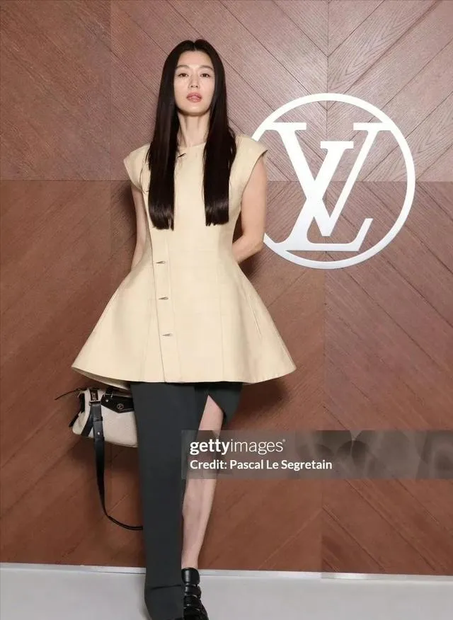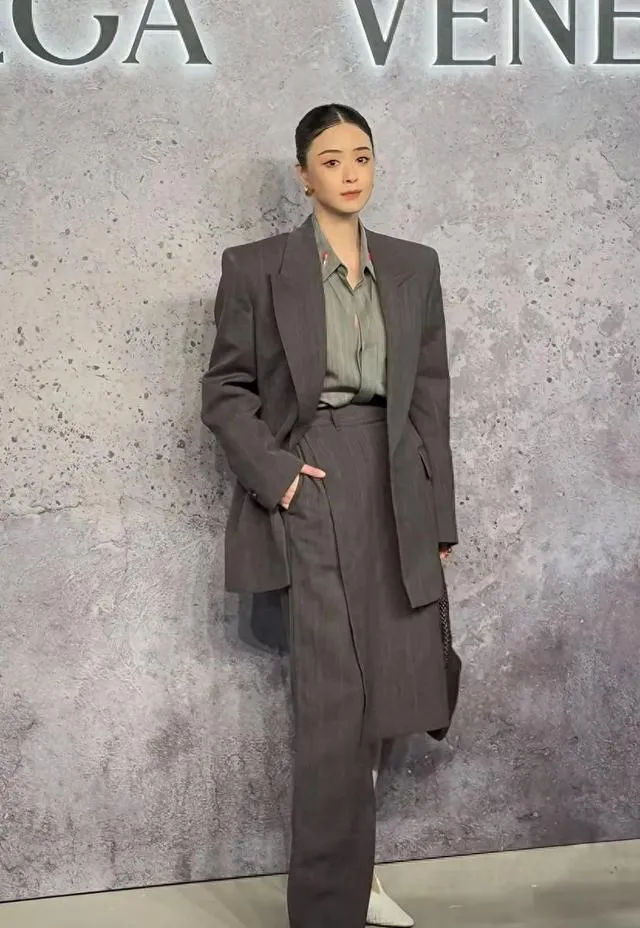 按照慣例,大家先來看看女藝人在活動上的表現,從不缺席大牌活動的蔣欣,這次選擇了一套2025年春夏系列的墊肩西裝褲,下半身則是同款材質的西裝半截褲,看上去像是一個幹練的女強人。