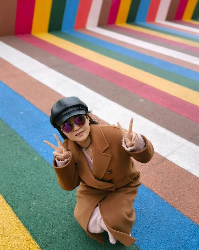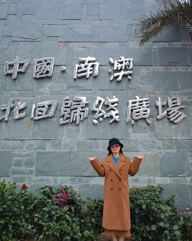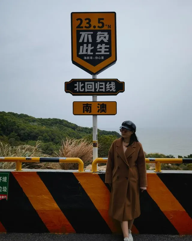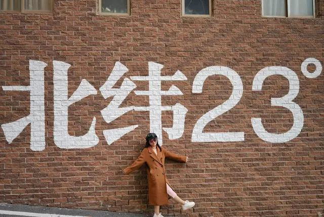 走著走著,看到一處不起眼的路口進進出出很多人,果斷路邊停車,隨著人流就到了前江灣網紅墻。這裏路面上寫著北回歸線,墻上出現了南澳和北緯字樣,以及彩虹路面。