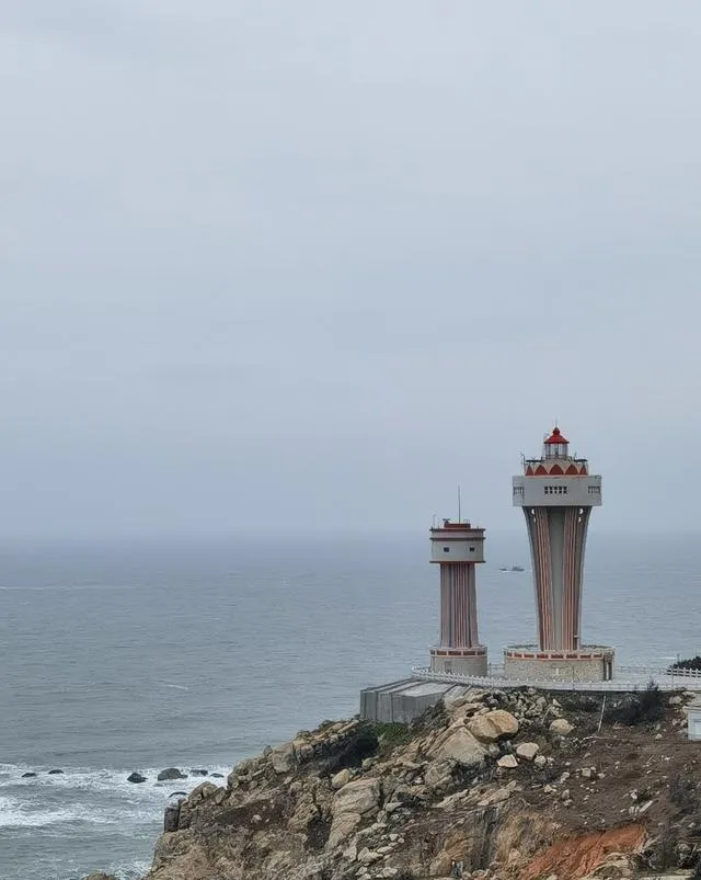 玩出來後把路過的小情侶忽悠了進去(善意的),繼續前行,到了三囪崖燈塔。燈塔主體為火炬狀,頂部為白色。