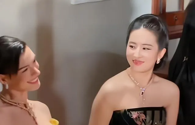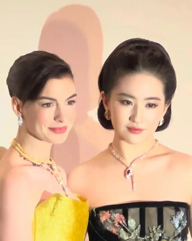 只見他左手挽著劉亦菲,右手挽著安妮海瑟薇,站在兩位美女中間,笑得春風得意。