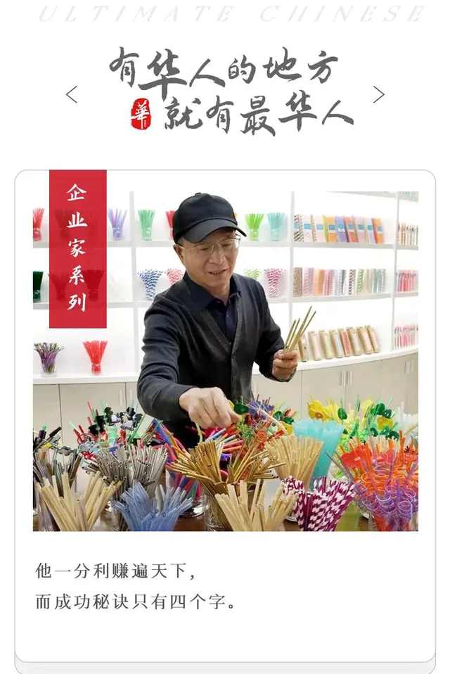 他也是從雞毛換糖開始,一步步成就了自己的商業傳奇,成為了名副其實的「世界吸管大王」。
