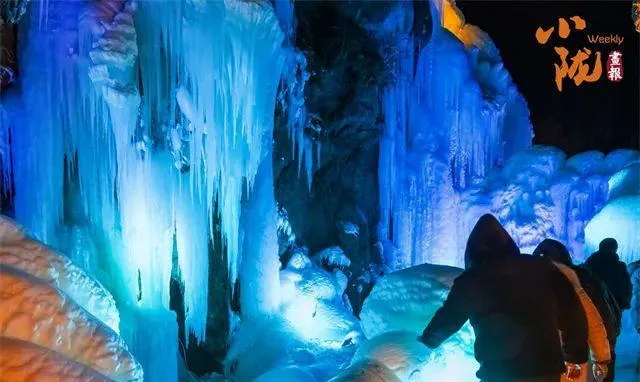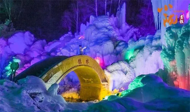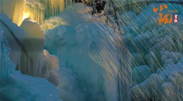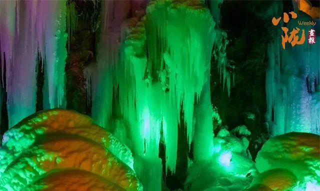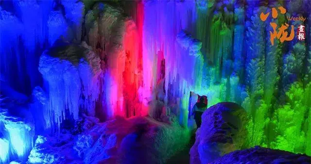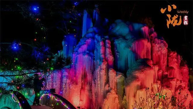 霓虹照亮了冰晶、冰瀑