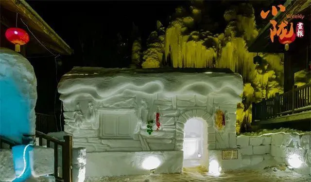 冰瀑景觀與浪漫冰雕巧妙搭配