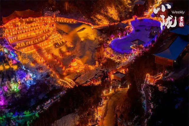 這些冰建築則被五彩斑斕的霓虹燈裝點得