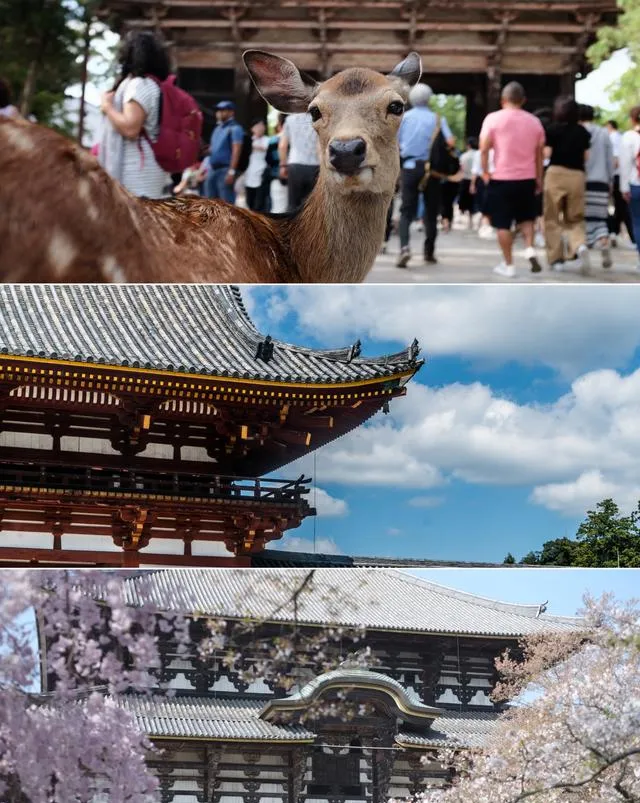 櫻花為什麽總讓人念念不忘 ?望著東大寺屋檐下追逐櫻花的小鹿,我忽然想起這座比京都更古老的都城,將1300年的光陰都釀進了櫻花裏。若草山腳的石燈籠映著新綻的櫻瓣,春日大社的青銅燈籠在花影裏搖曳生姿,就連寺廟飛檐上的青苔,都沾著去年落花的余香。