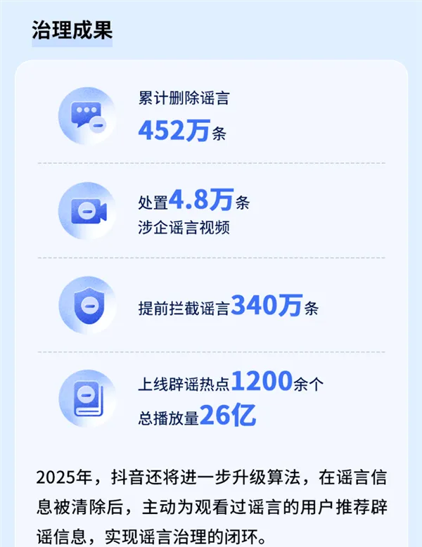 透過這一系列舉措,抖音不僅清除了大量謠言資訊,還積極為使用者提供了及時、準確的辟謠內容,有效維護了平台的資訊生態和使用者信任。