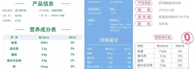 全脂牛奶的脂肪含量為三者中最高的,大多為 4 克/100 毫升;低脂牛奶的脂肪含量大多為 1.3 克/100 毫升;而脫脂牛奶的脂肪含量為 0.5 克/100 毫升以下。