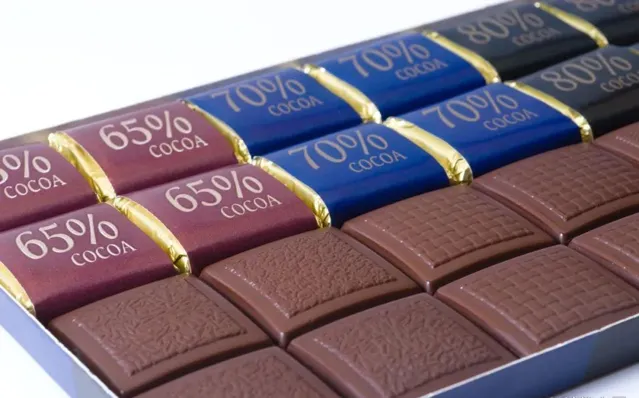 黑巧克力通常會標明一個百分數,代表可可固形物的含量。99% 的黑巧很多人覺得又苦又鹹,75% 左右的接受度就很高了,比起牛奶巧克力含糖量也更少,是不錯的選擇。