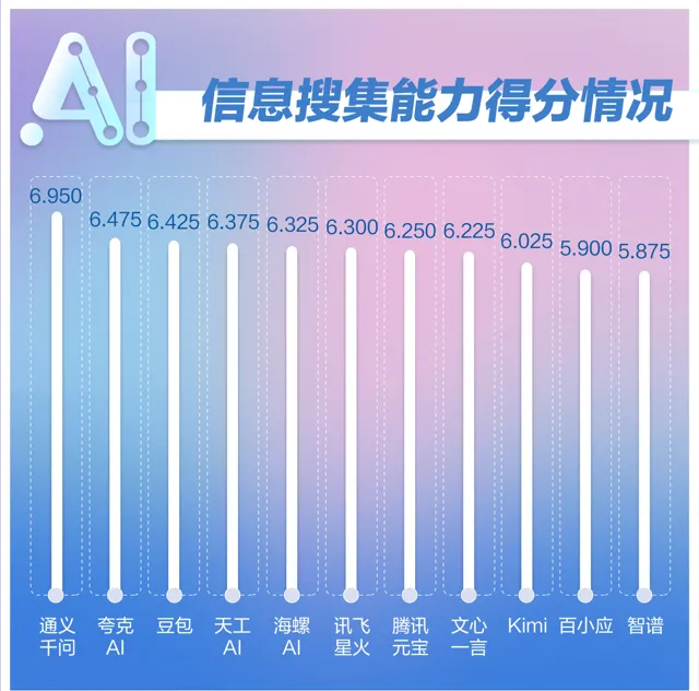 分析:通義千問在該項測試中以6.95分位列首位,並與第二名的誇克AI拉開了約0.5分的分差,優勢明顯。本維度共包含四個題目,均為直接考察大模型的搜尋能力準備。大部份模型能緊跟時事新聞動態,給出較完整的檢索結果。對於「總結吳柳芳事件」這一測試題目,絕大多數大模型均從起因、發展過程、相關回應等方面總結出事件原委。