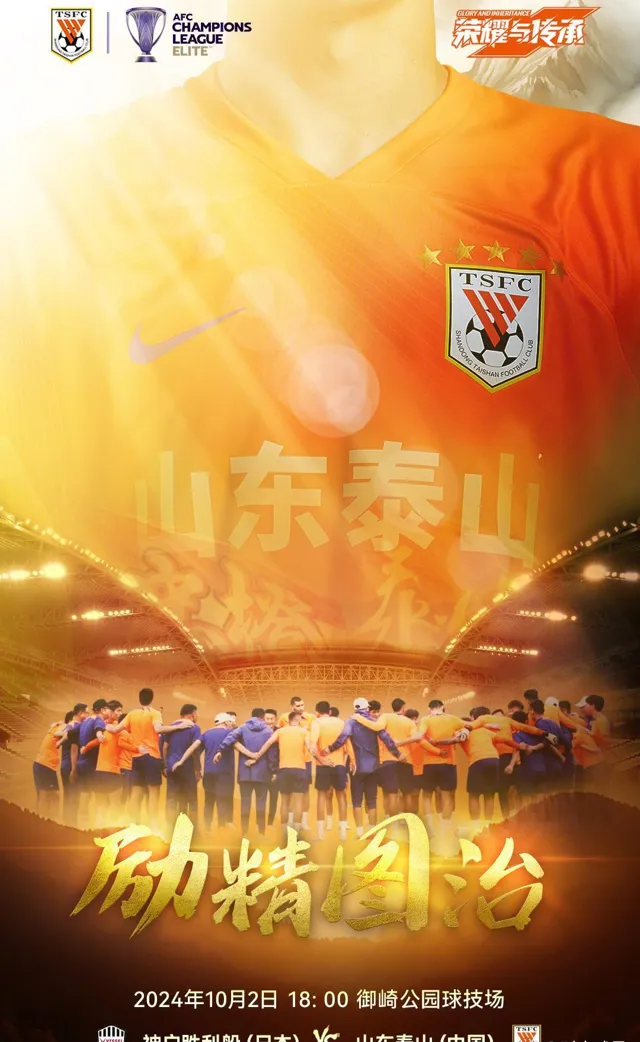 台北時間10月2日18:00,在2024/25賽季亞冠精英聯賽第2輪中,中超豪門山東泰山將奔赴客場禦崎公園球技場,挑戰日本J聯賽勁旅神戶勝利船。賽前,山東泰山足球俱樂部釋出了此役的賽事海報,主題為:勵精圖治。