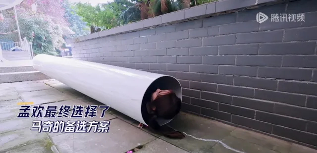 孟歡也是一樣,選秀「未出道」愛豆出身,特長是可以藏在一個常人難以想象的狹窄空間,第二場遊戲中,孟歡直接把自己塞進了一個寬度只有三四十厘米的下水道裏,自我介紹時最自豪的「身體柔韌」的優勢真的是誠不欺「冷眼」。
