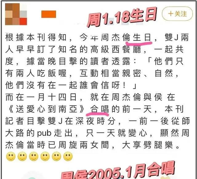 1月18日是周杰倫生日,台媒爆料2005年蔡依林陪他過;轉眼來到2005年2月,周侯戀名場面曝光,二人同遊日本,在代官山被拍。
