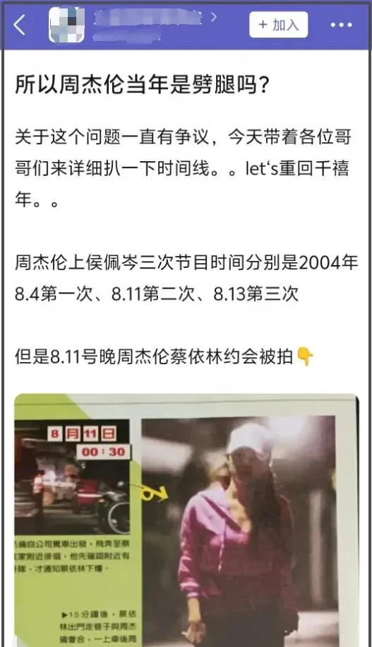根據網友扒出來的時間線,雙J戀和周侯戀一前一後確有重疊,2004年,周杰倫上了三次侯佩岑的節目,分別是8月4號、11號和13號;