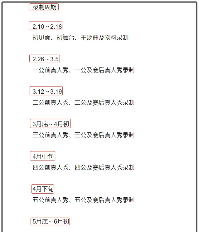 和往季節目一樣,【浪姐6】依舊采取錄播的模式,每一次公演舞台也會分開錄制。從網路曝光的錄制周期來看,本季節目錄制時間非常緊張,對於參賽姐姐的體能和學習能力都是一種巨大的考驗。