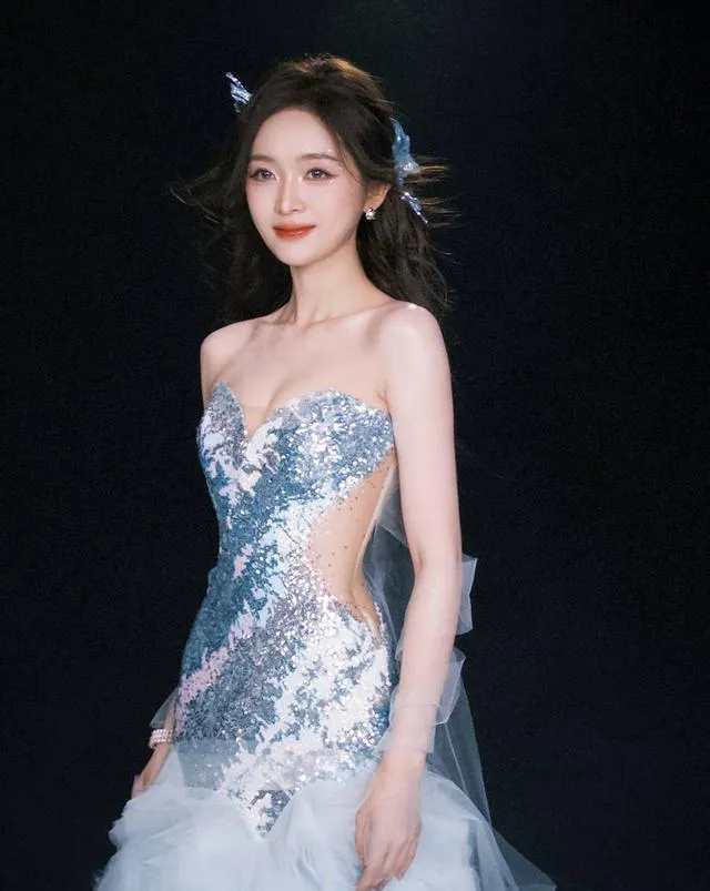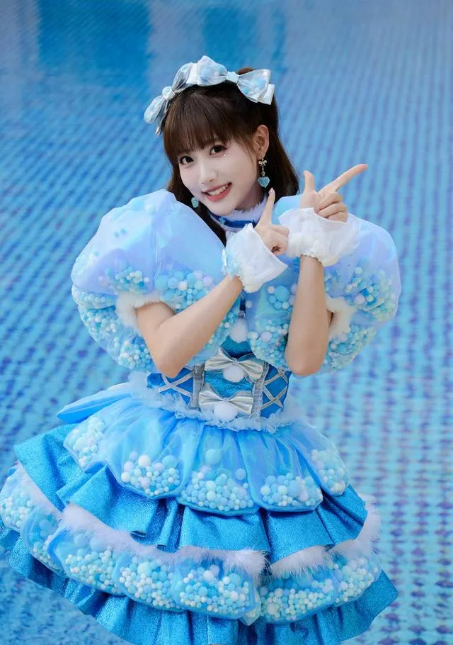 李藝彤身披藍色蓬蓬裙,頭戴水晶皇冠,以【鋼鐵之翼】舞台展現「二次元公主」的甜美與堅韌。裙擺的3D打印蝴蝶結與LED燈帶設計,被調侃「從動漫裏走出的在逃女主」。