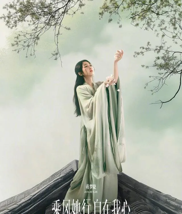蔣夢婕一襲綠色古風襦裙,復刻【新紅樓夢】林黛玉的經典造型。刺繡竹葉裙擺與素色團扇相映,吟唱【葬花吟】時,被網友感慨「絳珠仙子從書中走出」。