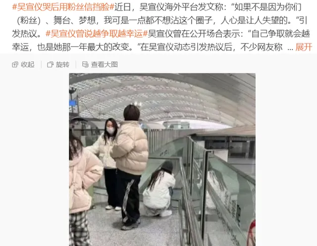 近日,「吳宣儀在機場哭了」話題登上熱搜,很多粉絲得知吳宣儀的行程之後,都到北京機場接機,從現場的情況上看,確實有非常多的人,然後代拍近距離圍堵,導致現場秩序混亂,這讓吳宣儀的情緒非常崩潰,導致她蹲在地上哭泣,但調整好自己的心情之後,吳宣儀依舊收下粉絲送的信。